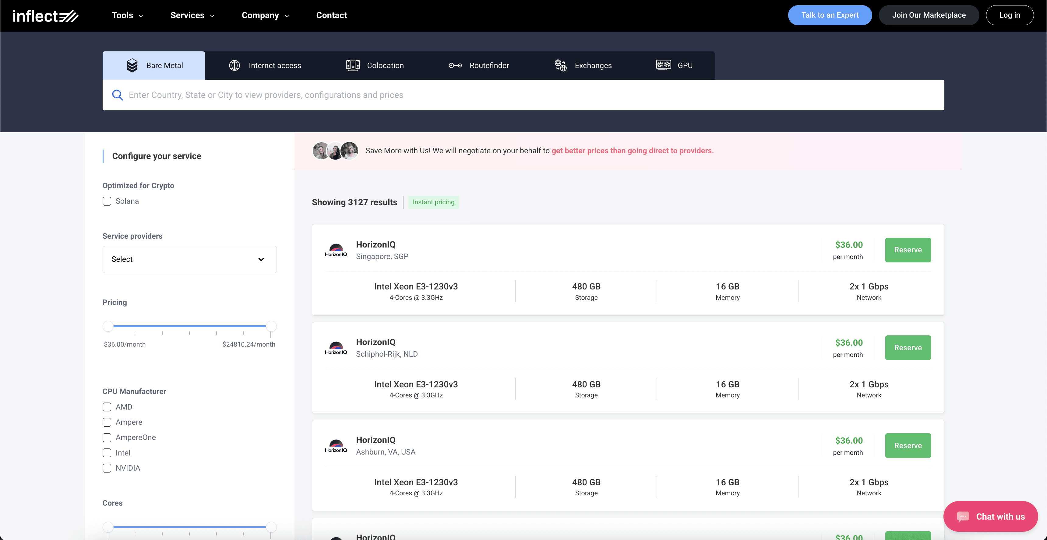 Inflect Digital Infrastructure Marketplace is the best place to research, compare and buy bare metal with pricing ready and 0 cost expert advisory